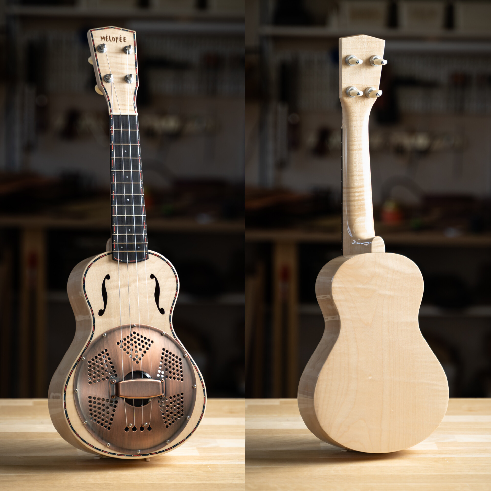 Unique High End Resonator Ukulele handcrafted in France.