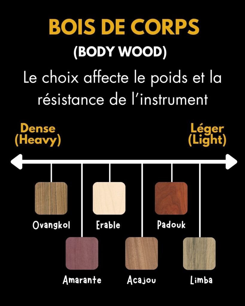 Le corps de l’instrument peut être réalisé à partir de différentes essences de bois massif. Sa robustesse inspire confiance et permet de garantir sa longévité en limitant les risques de casse ou de détérioration.